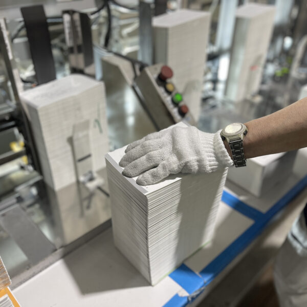 ポリオレフィン系(MPO)ホットメルト接着剤を採用し、開きが良く、高強度と環境配慮を両立。強度テストやCO2削減などの環境負荷データでも高く評価されています。