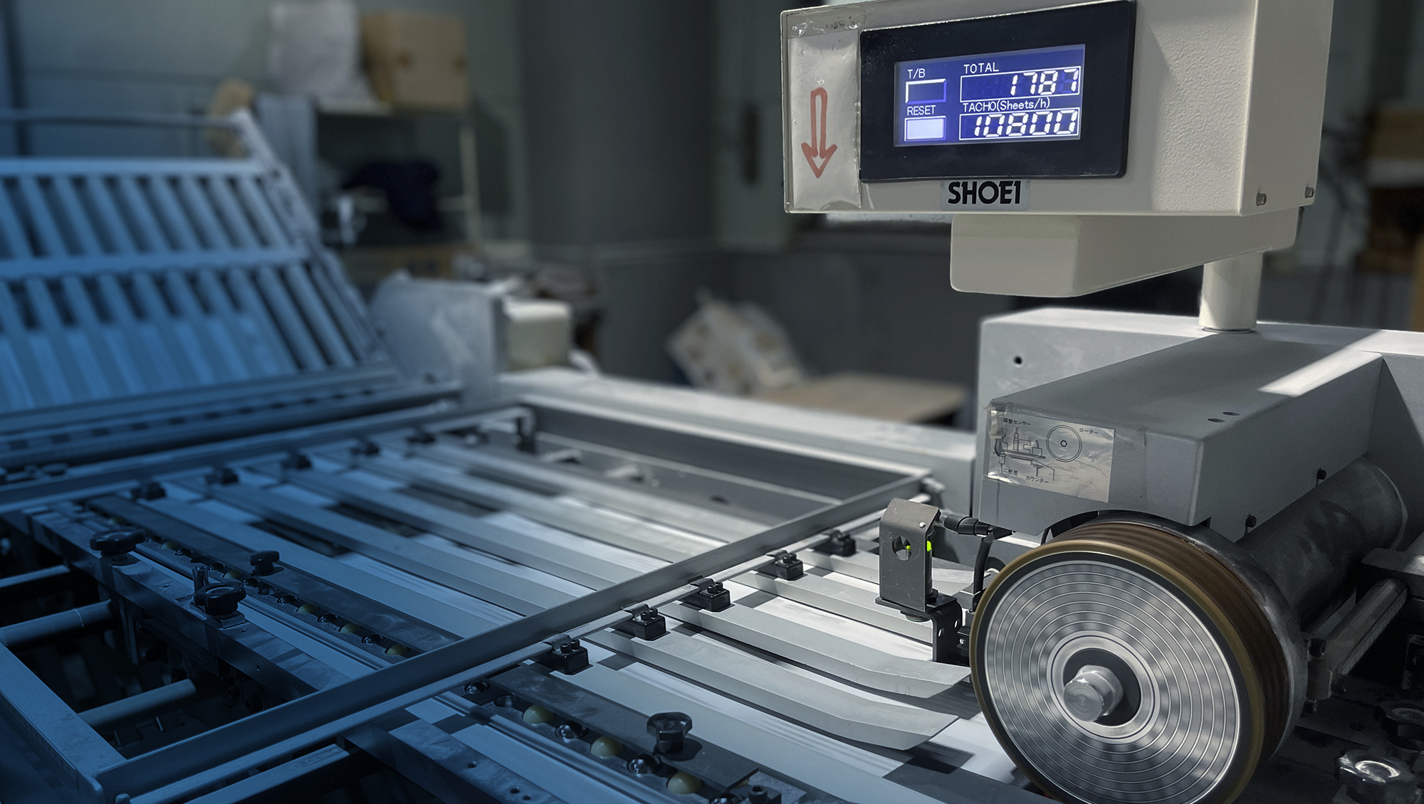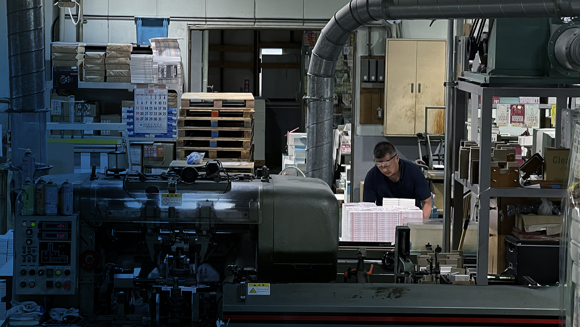 長年働く熟練の製本職人は、気温による糊の粘度変化、湿度による紙の歪みや静電気の発生といった環境の変化を五感で察知し、適切な調整を行っています。